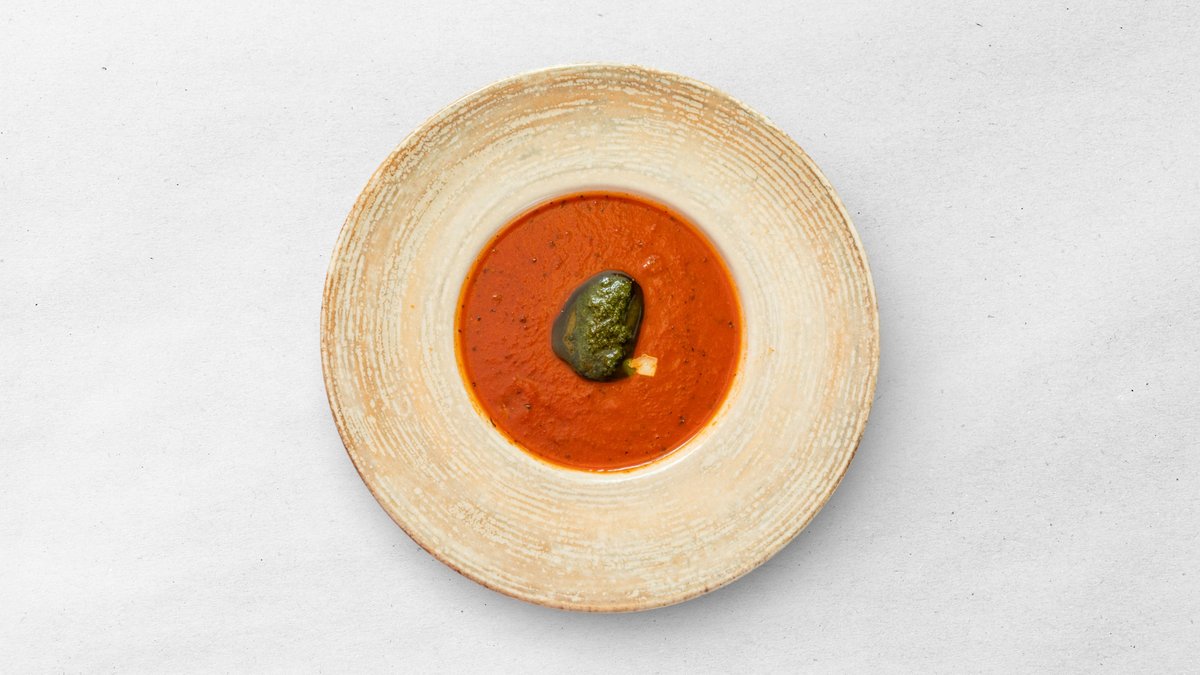 Paradajková polievka s bazalkovým pestom a mozzarellou