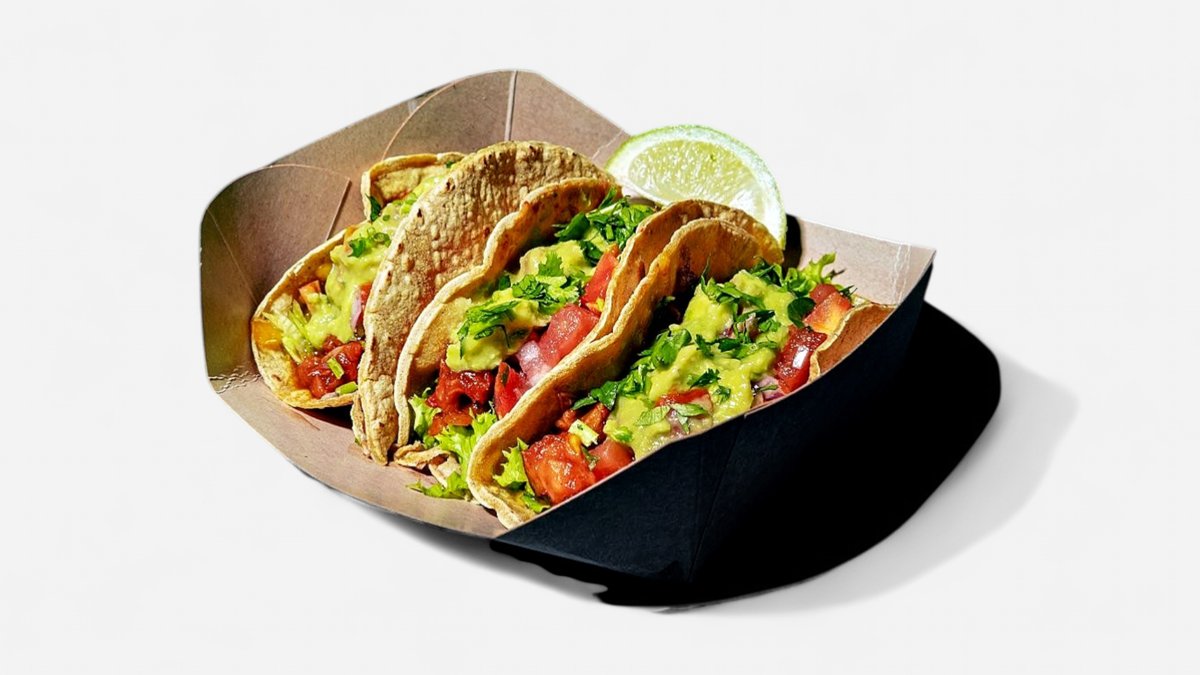 Kukuričná tortilla, šalát, fazula, paradajková salsa (obsahuje koriander), pomaly pečené hovädzie , cheddar syr, guacamole (obsahuje koriander), koriander / obsahuje: 7