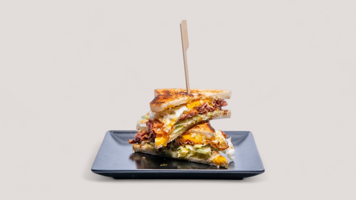 Chrumkavá slanina, cheddar, ľadový šalát, vajíčko, paradajka, majonéza. Alergény (1,3,7)