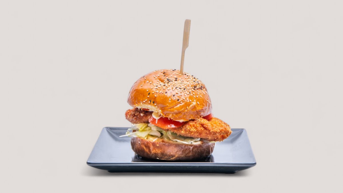 150g šťavnatých dobre namarinádovaných kuracích pŕs v žemli, pikantná majonéza, ľadový šalát, paradajka. Alergény (1,3)