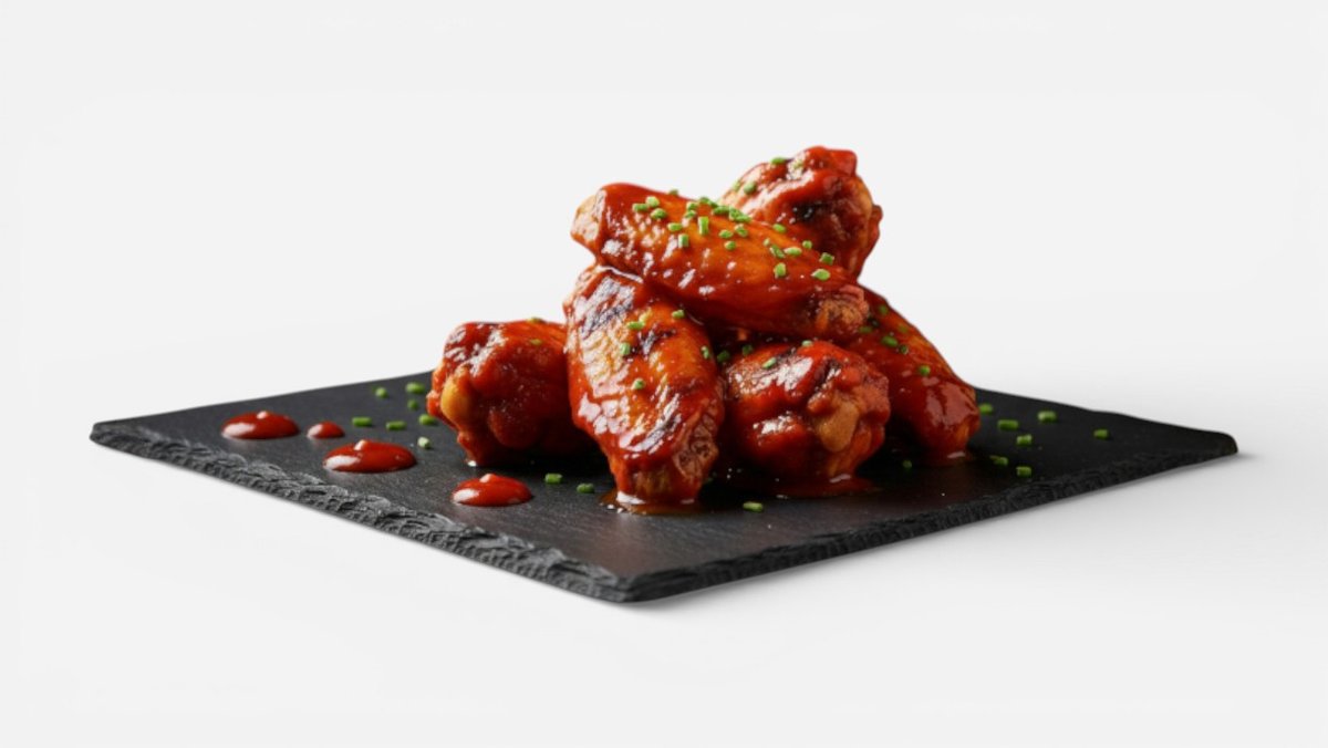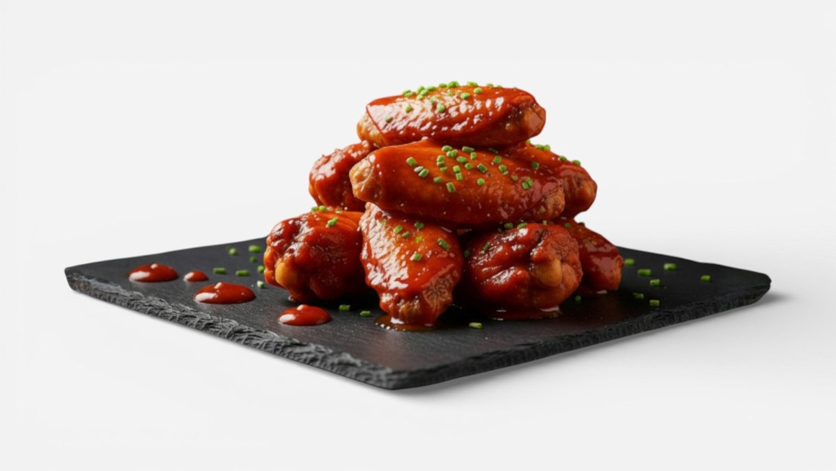 Kuracie krídelká Buffalo poliate BBQ omáčkou s jemným nádychom dubového dymu.