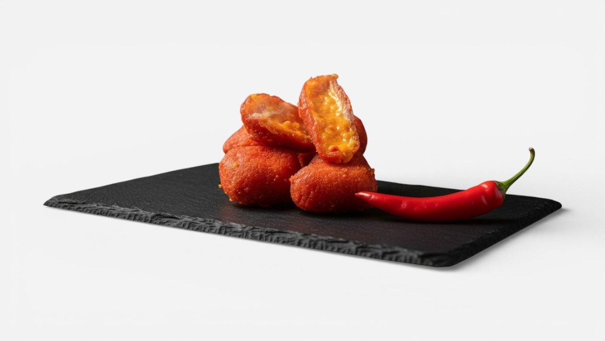 Syr cheddar s papričkami Habanero, pikantný a zafarbený do červena obsahuje: 1,6,7 5ks cca 90g