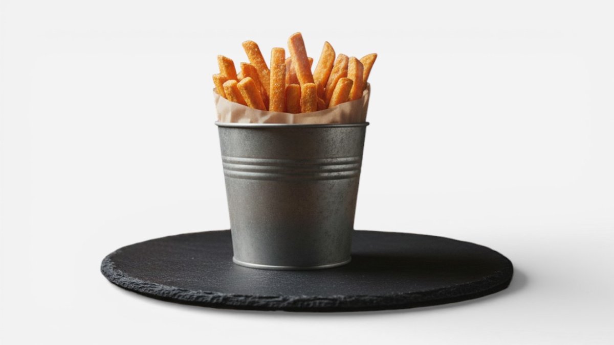 Maslová brioška, aioli z cesnaku, 150g vyzretý Írsky Chuck Roll, plátok krémového Monterey Jack, chrumkavá Gierlinger slaninka, mix šalátových listov, jalapeňo papričky, červená cibuľka, tortilla chipsy, paradajka, samurai, CIBUĽOVÉ KRÚŽKY 3ks, HRANOLČEKY 200g / obsahuje: 1,3,7,10,11