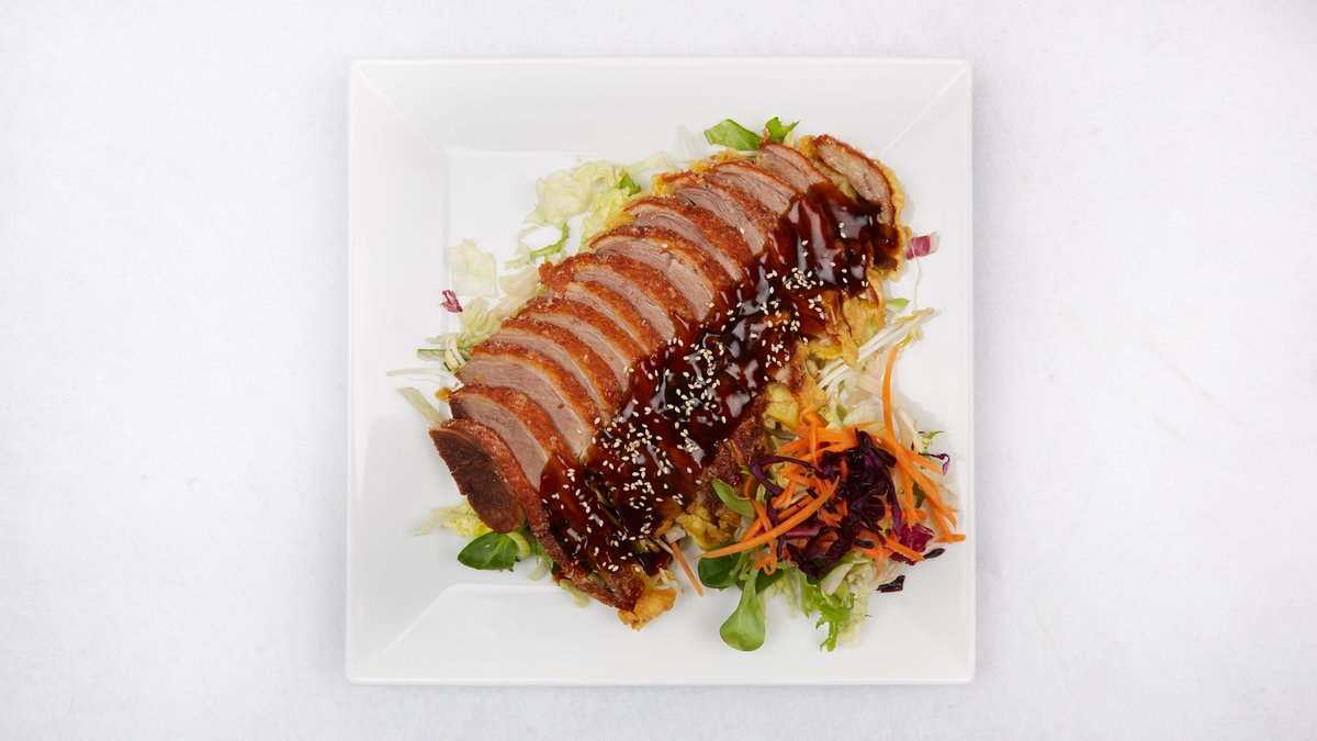 chrumkavá kačica, šalát, omáčka bez prílohy 350g / obsahuje: 1,6