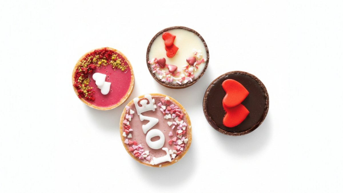 4ks tartaletiek s príchuťou čokoláda-karamel, svieži kokos, jahoda a malina. Ozdobené hravými srdiečkami a nápisom LOVE (1,3,7,8)