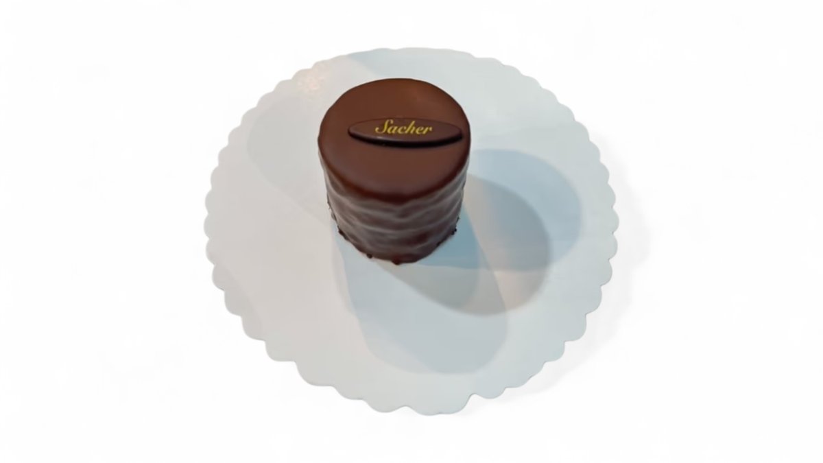 Sacher tortička podľa klasickej receptúry s marhuľovým džemom, poliata čokoládovu. 133g/ 1,3,7
