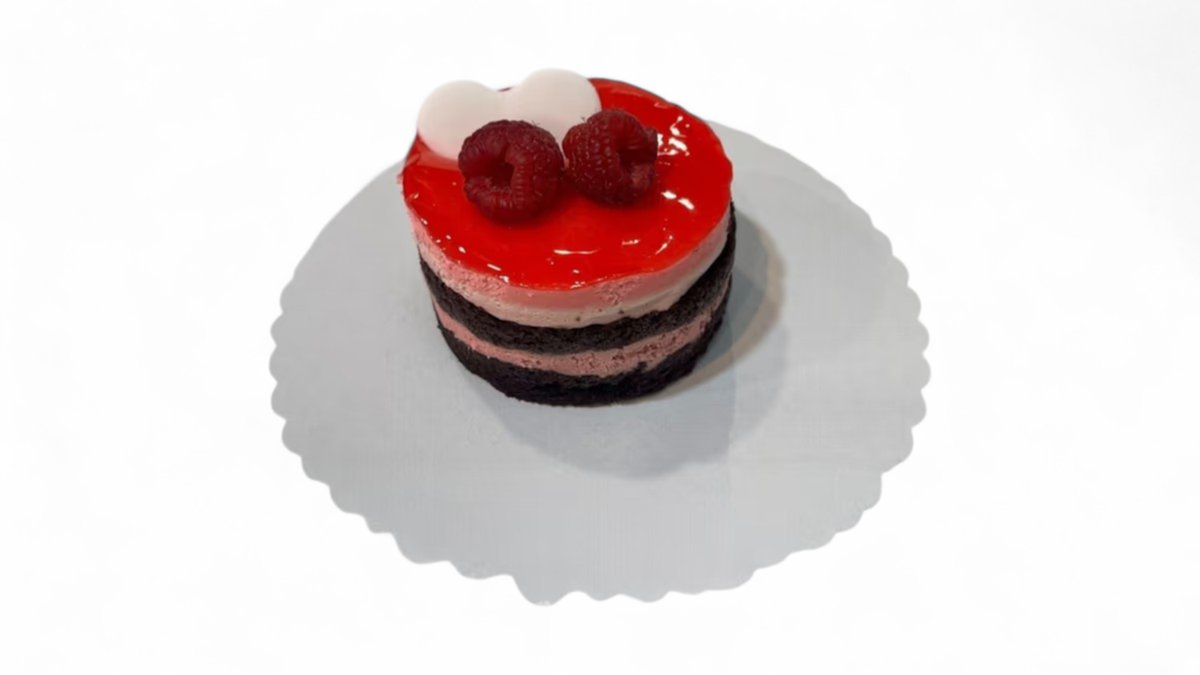 svieža čokoládovo-malinová tortička v tvare srdca zdobená makrónkami 1000g / obsahuje: 1,3,7