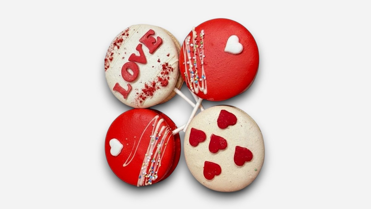 Set makarónových lízaniek s Valentínskym motívom, rôzne druhy. 4ks/3,7,8