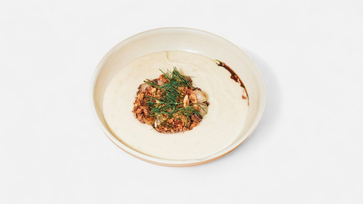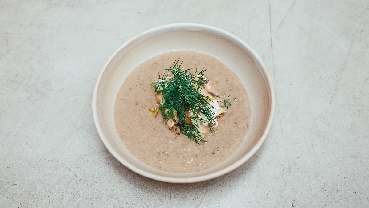 Kulajda, vajce 63°C, zemiaky, nakladané huby, kôpor