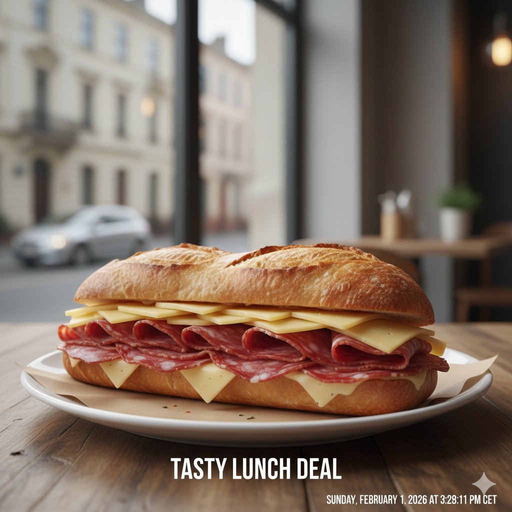 Teľacie mäsko, syr Eidam, šalát, zelenina a omáčka podľa výberu. 400 g / obsahuje: 7