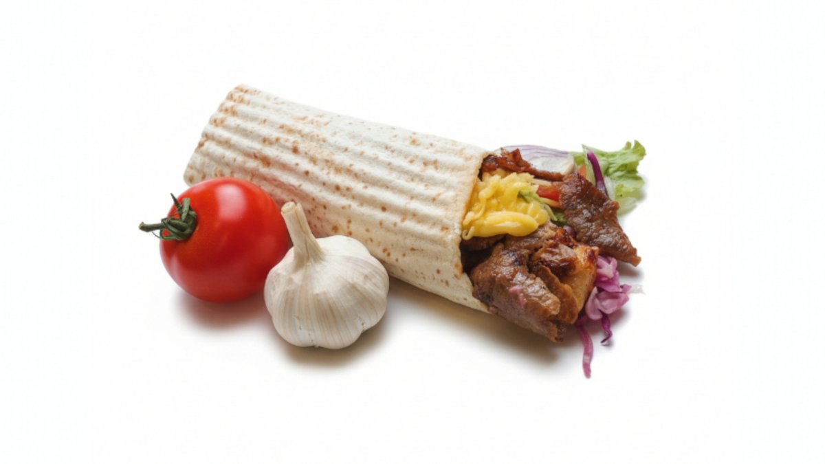 Turecká žemľa, kuracie a teľacie mäso, zelenina a omáčka podľa výberu. 280 g / obsahuje: 1,3,7
