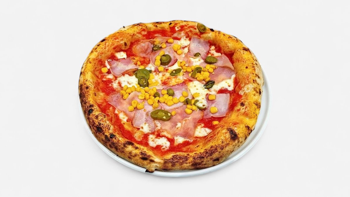 paradajkový základ, mozzarella, šunka, slanina, kukurica, feferóny, parmezán 520 g / obsahuje: 1,4,7