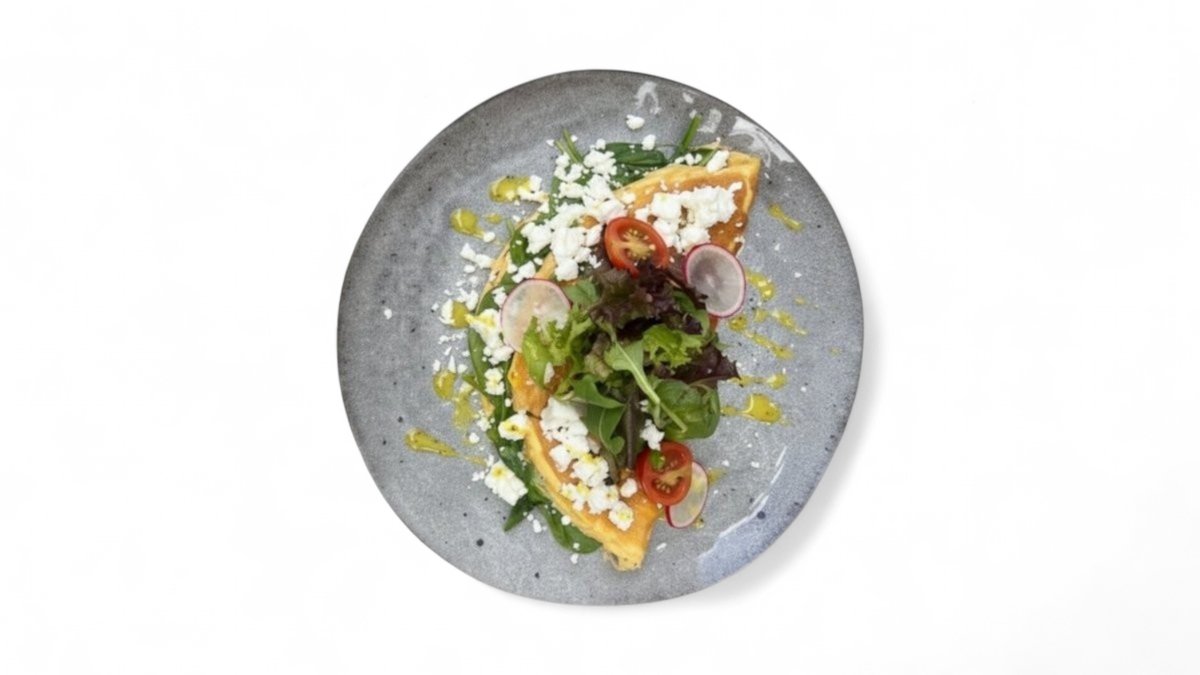 Miešané vajíčka s cherry paradajkami, bazalkou a balkánskym syrom