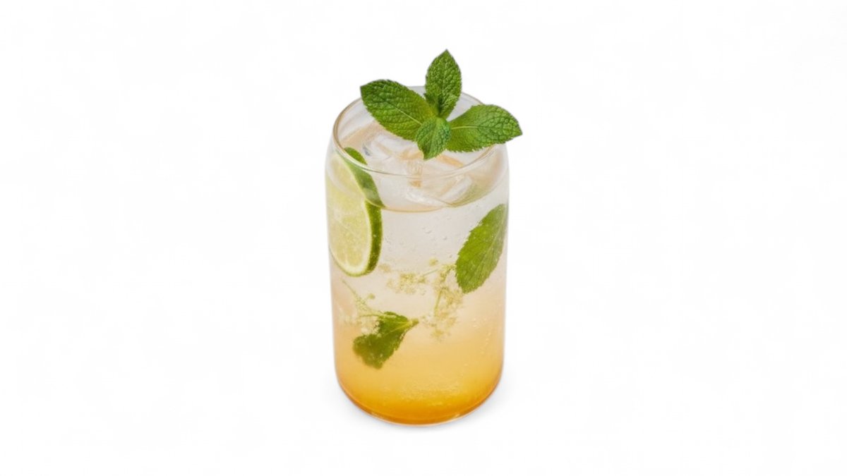 50 ml bazový sirup, 150 ml sekt, 150 ml sóda, mäta, citrón, ľad 250ml
