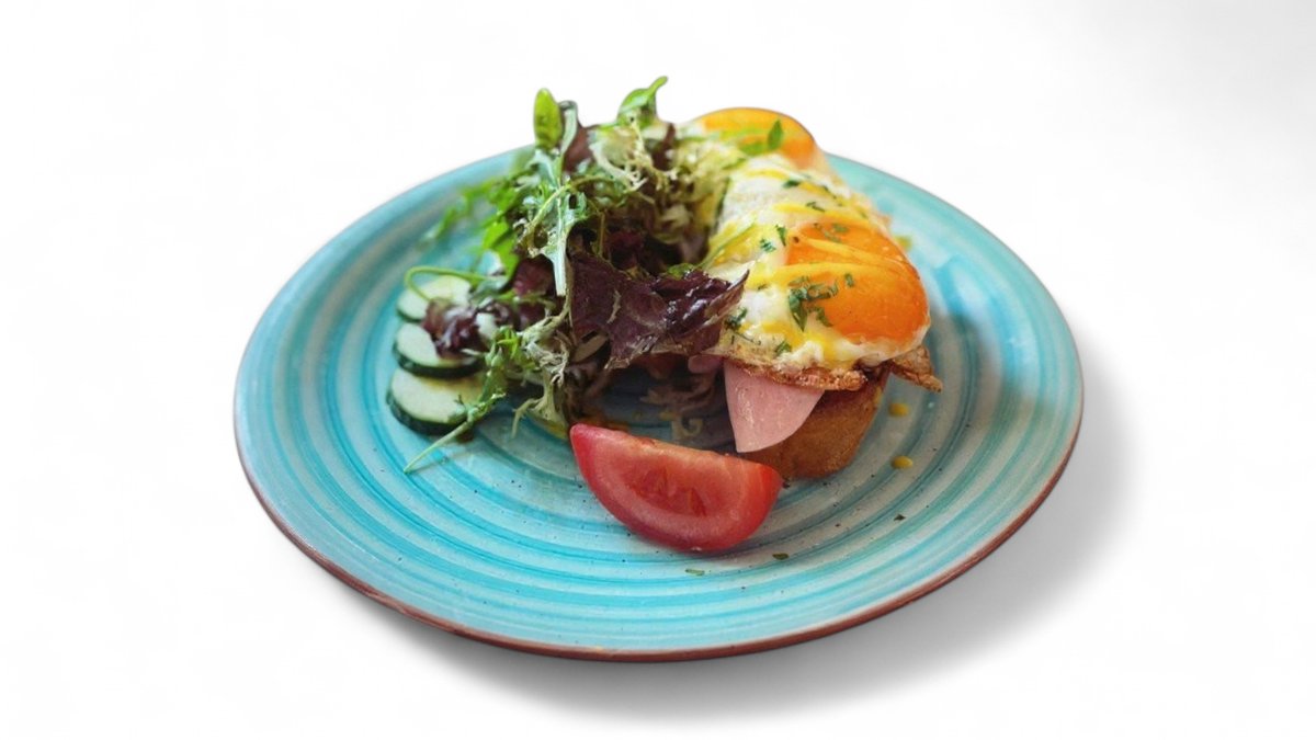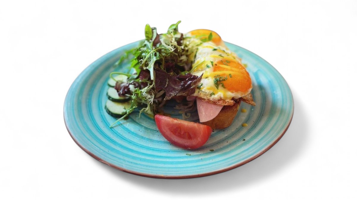 s cheddarom, volským okom, sezónnym šalátom, bylinková majonéza s čili 180g / obsahuje: 1,3,7