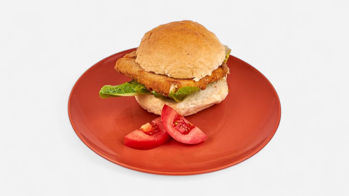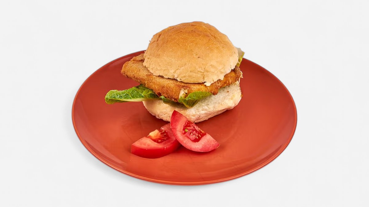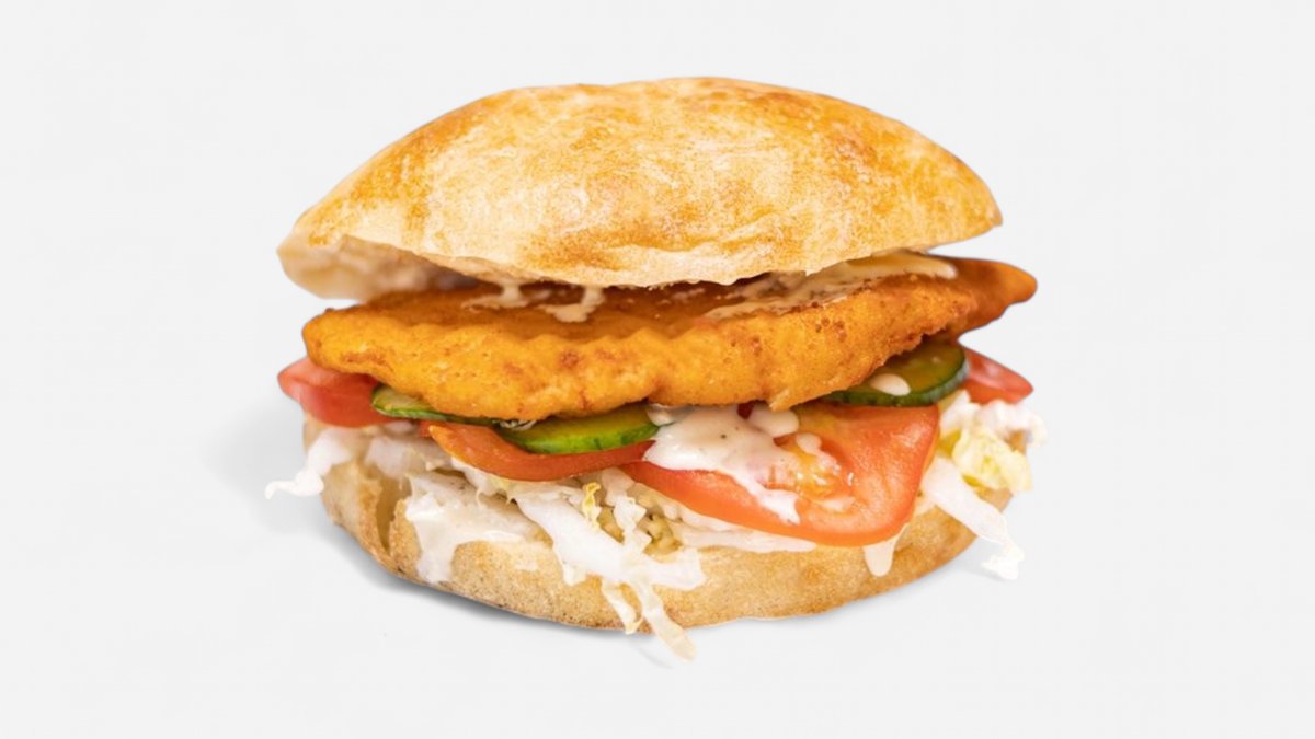 Vyprážaný rezeň v domácej extra žemli, dresing, obloha