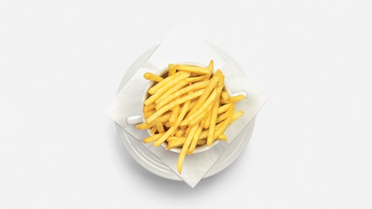 Vyprážaný karfiol, hranolky, obloha, dresing