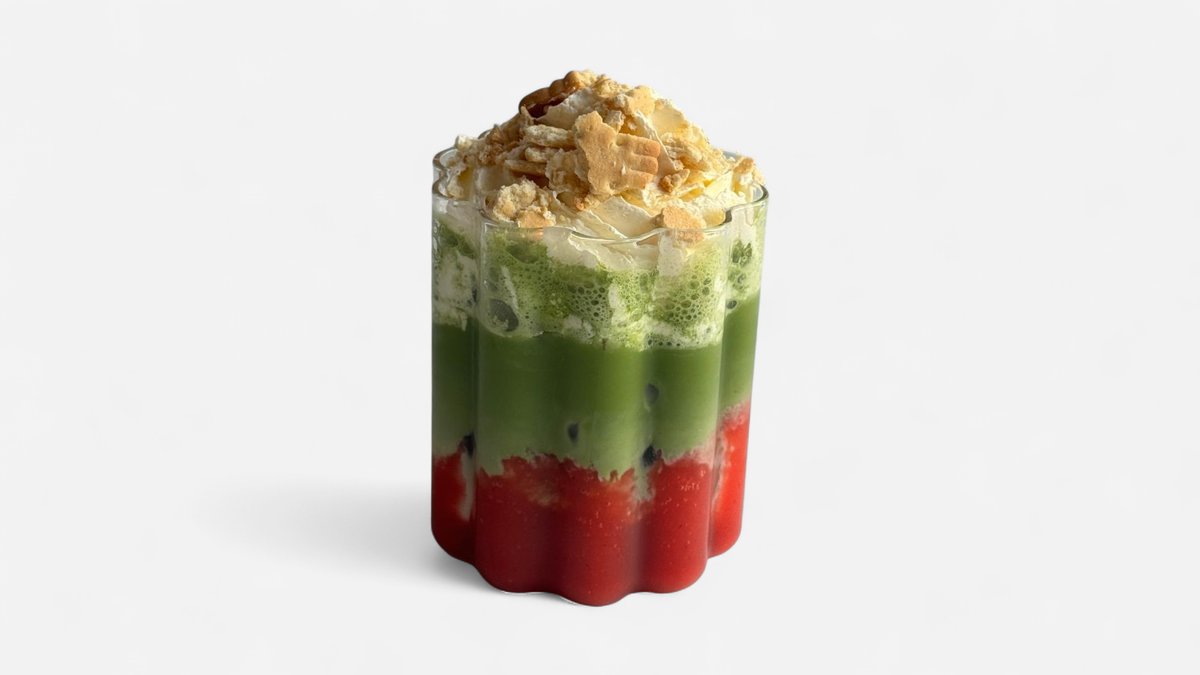 ceremoniálna matcha, mlieko, jahodové pyré, smotana, vanilka, myslový keks, šľahačka 300ml, 2g / obsahuje: 1,6,7