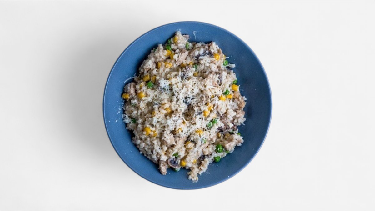 Ryža, smotana, kuracie mäso, cuketa,cibuľa ,cesnak,parmezán