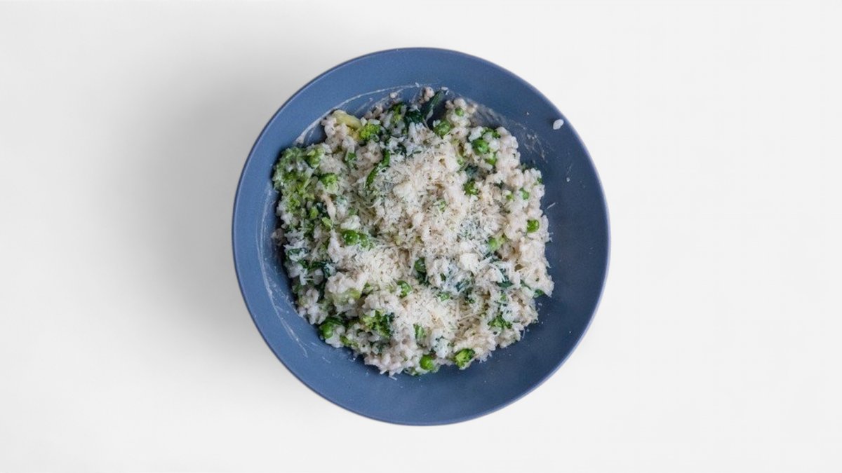 Ryža, smotana, čerstvý špenát, brokolica, cesnak, parmezán