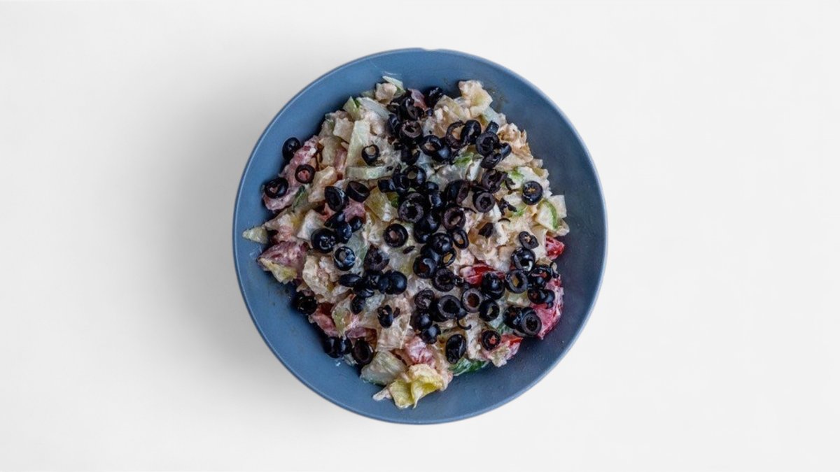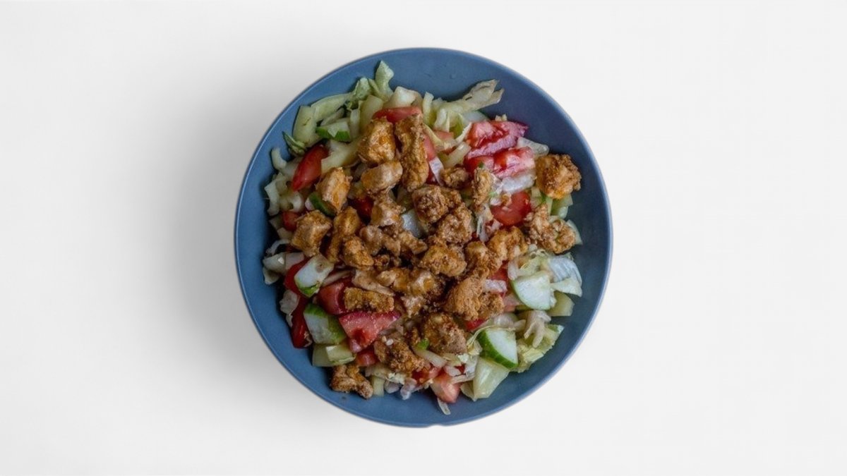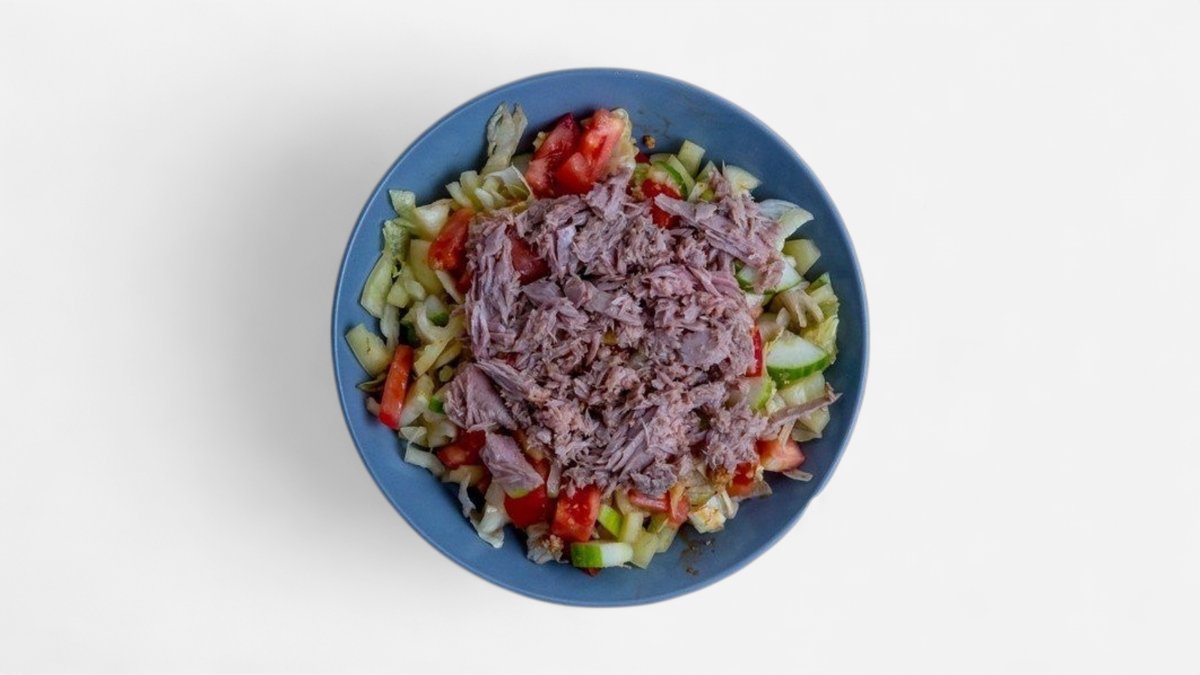 Šalát, paradajka, uhorka, tuniak, paprika, cibuľa.