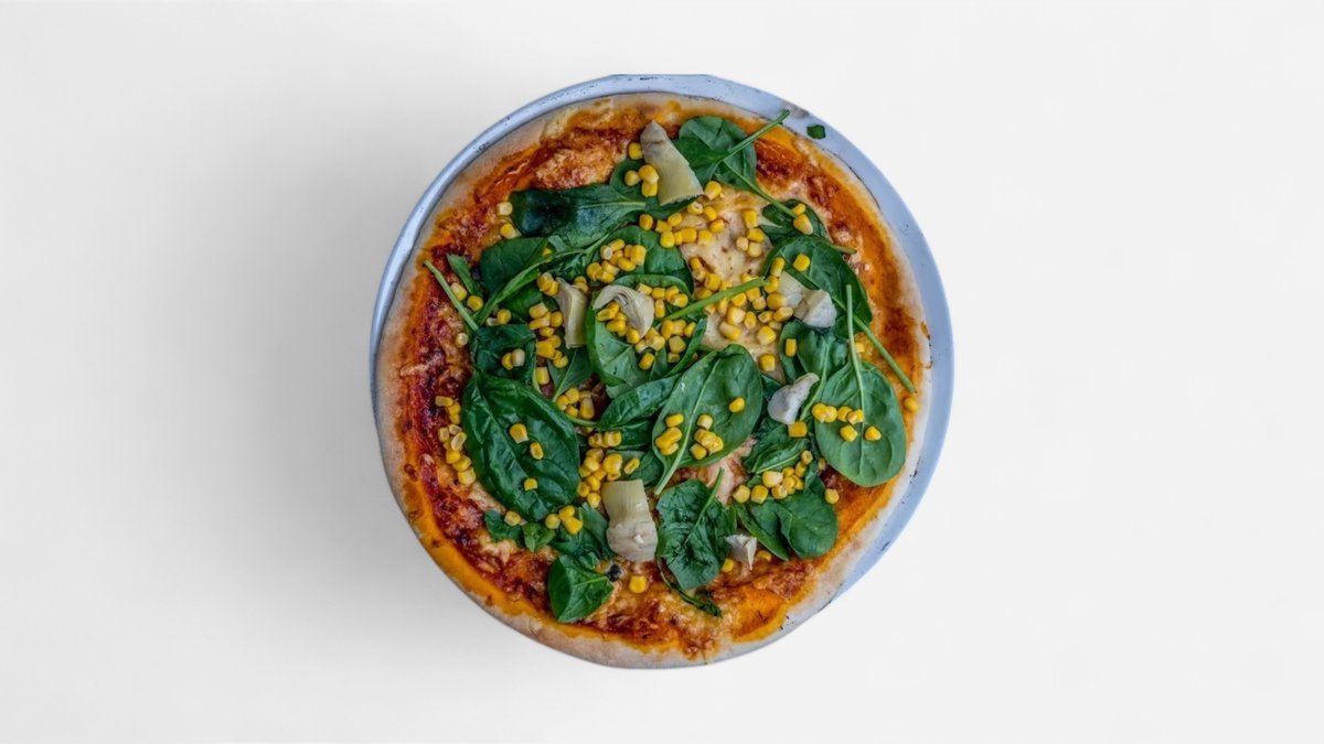 Tomato, eidam, čerstvý špenát, kukurica, artičoky