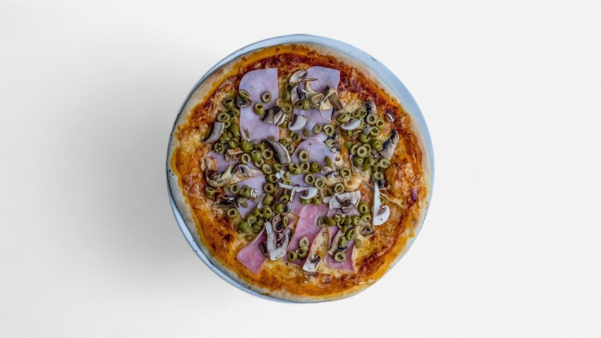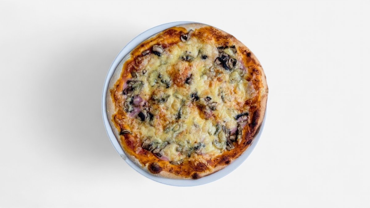 Tomato, eidam, šiúnka, šampiňóny, olivy