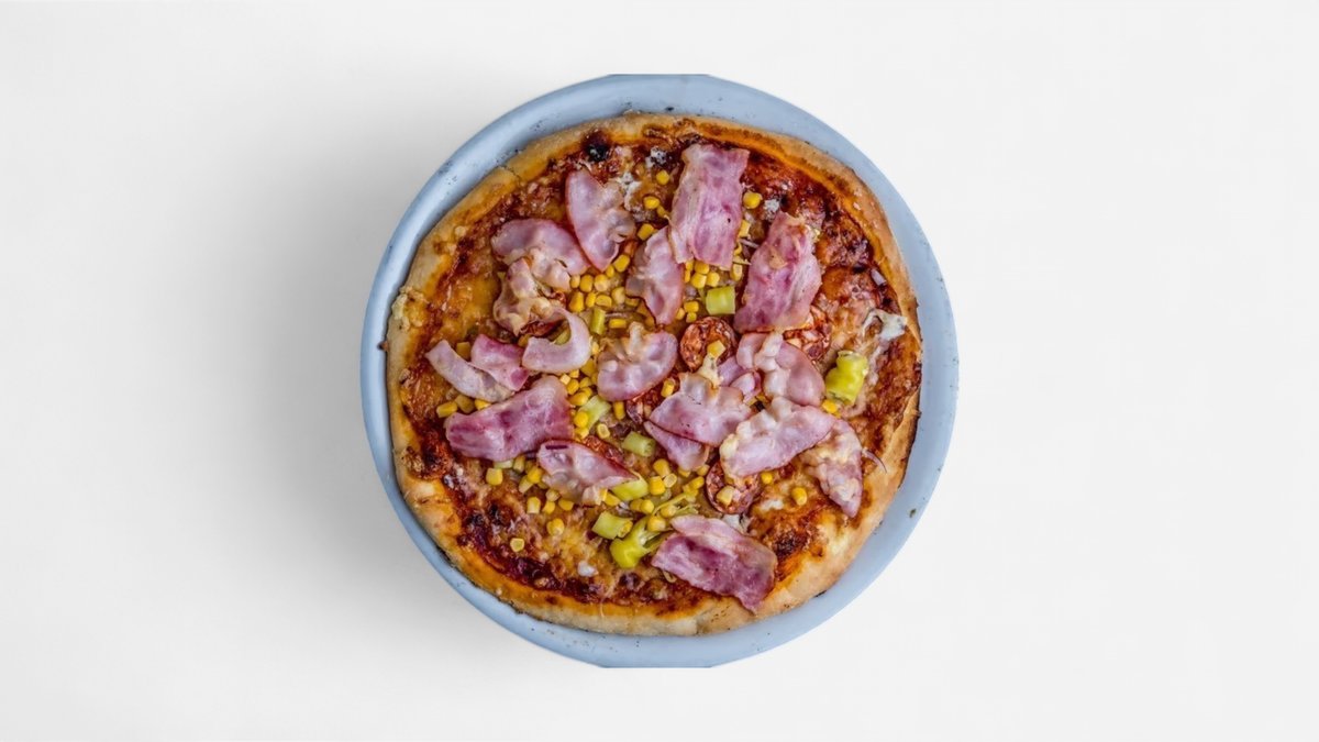 Tomato, mozzarella,šunka, slanina, feferóny,kukurica
