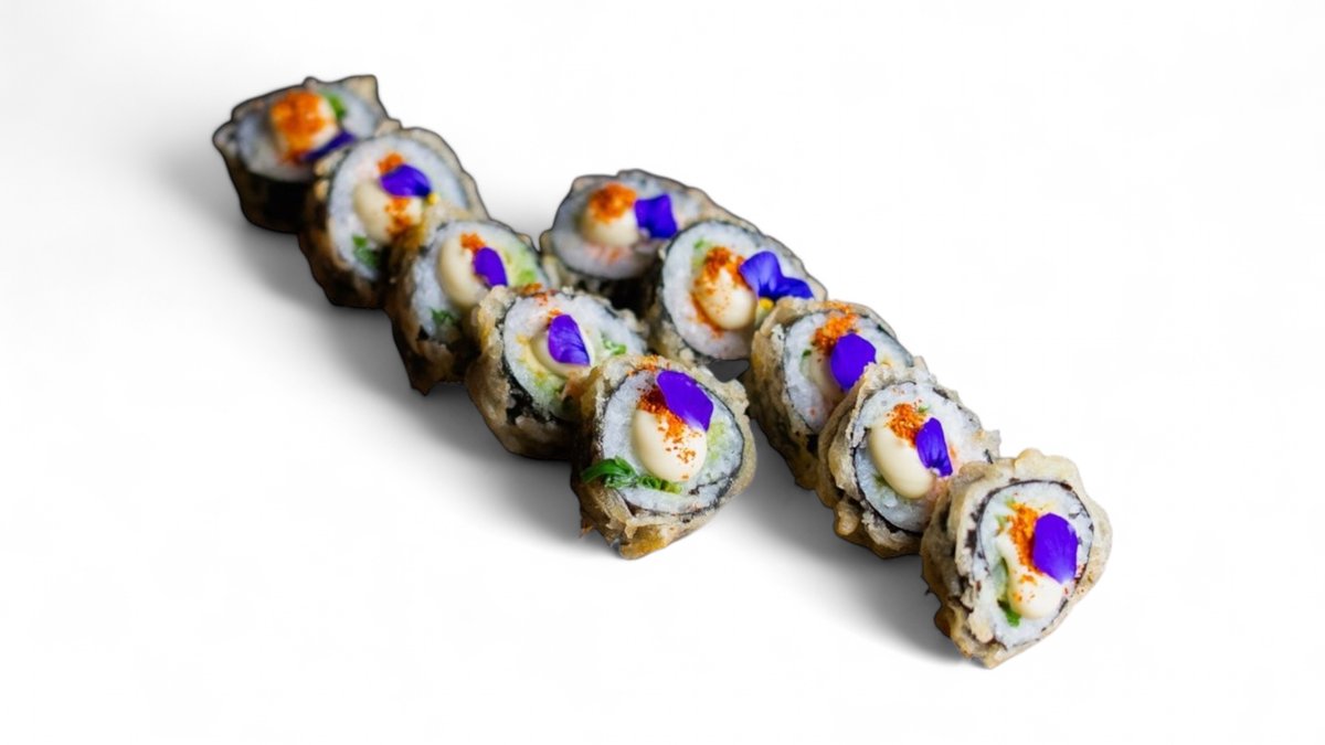 Avokádo, uhorka, oshinko v panko, kreveta v tempure, tobico spice mayo 300g /1,2,3,4,6,11,14/