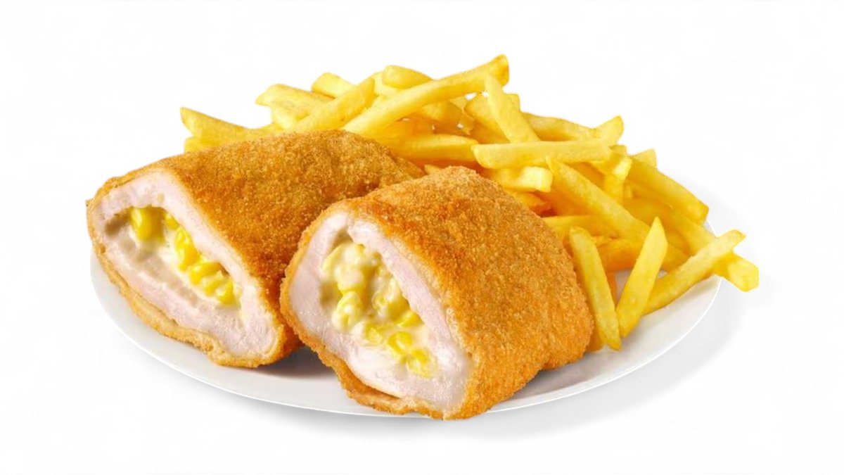 kuracie prsia, tavený syr, kukurica 120g / obsahuje: 1, 3, 7, 9, 10