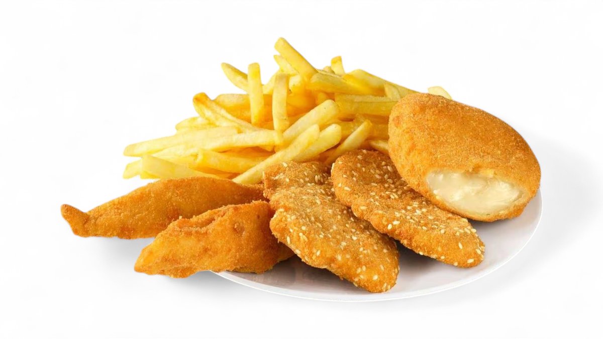 kuracie prsia, zemiakové cestíčko, syr 120g / obsahuje: 1, 3, 7, 9, 10
