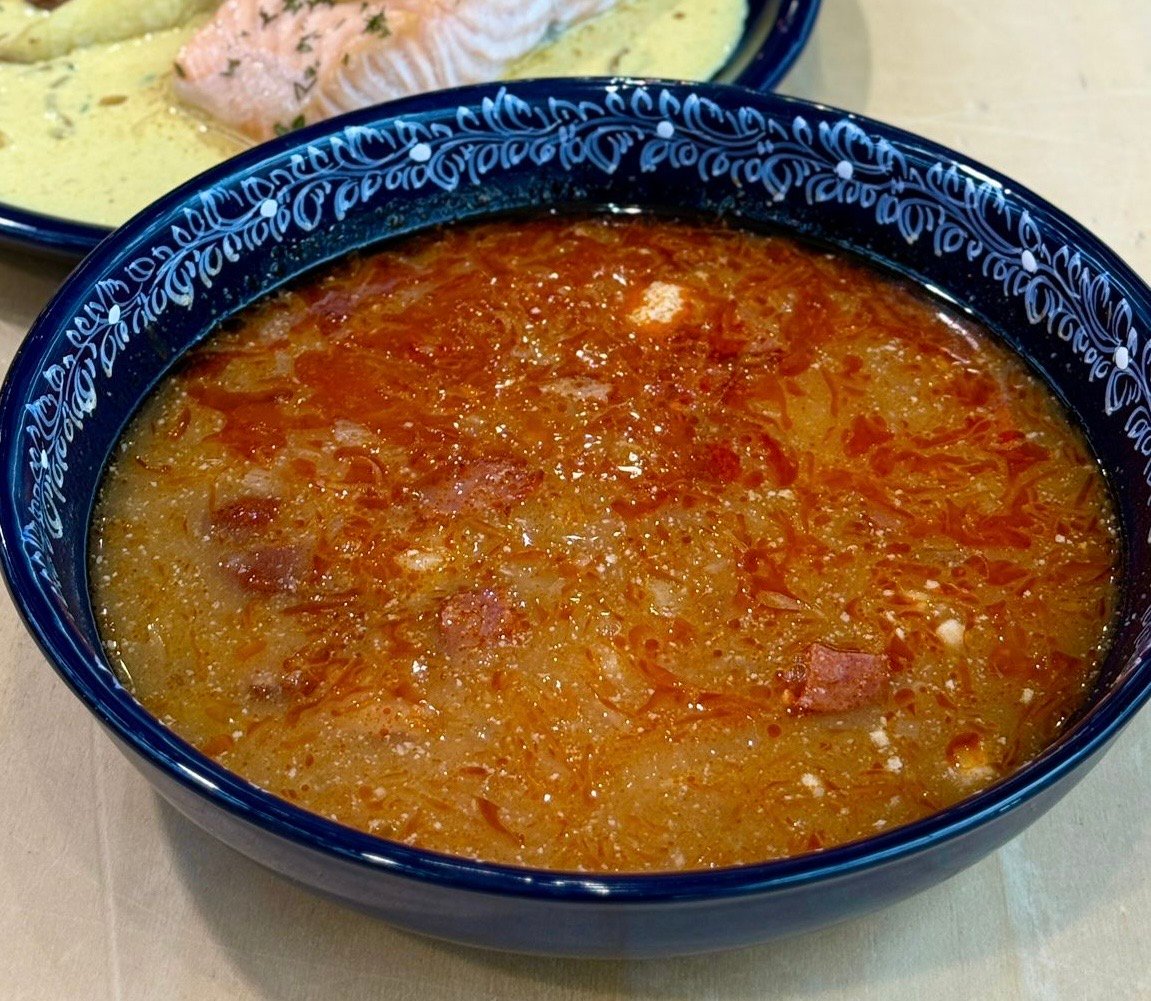 Bez konzervantov. Bravčové mäso, kvasená kapusta, cibuľa, soľ, zmes korenia, paprika. 250g /1, 3, 7, 9/