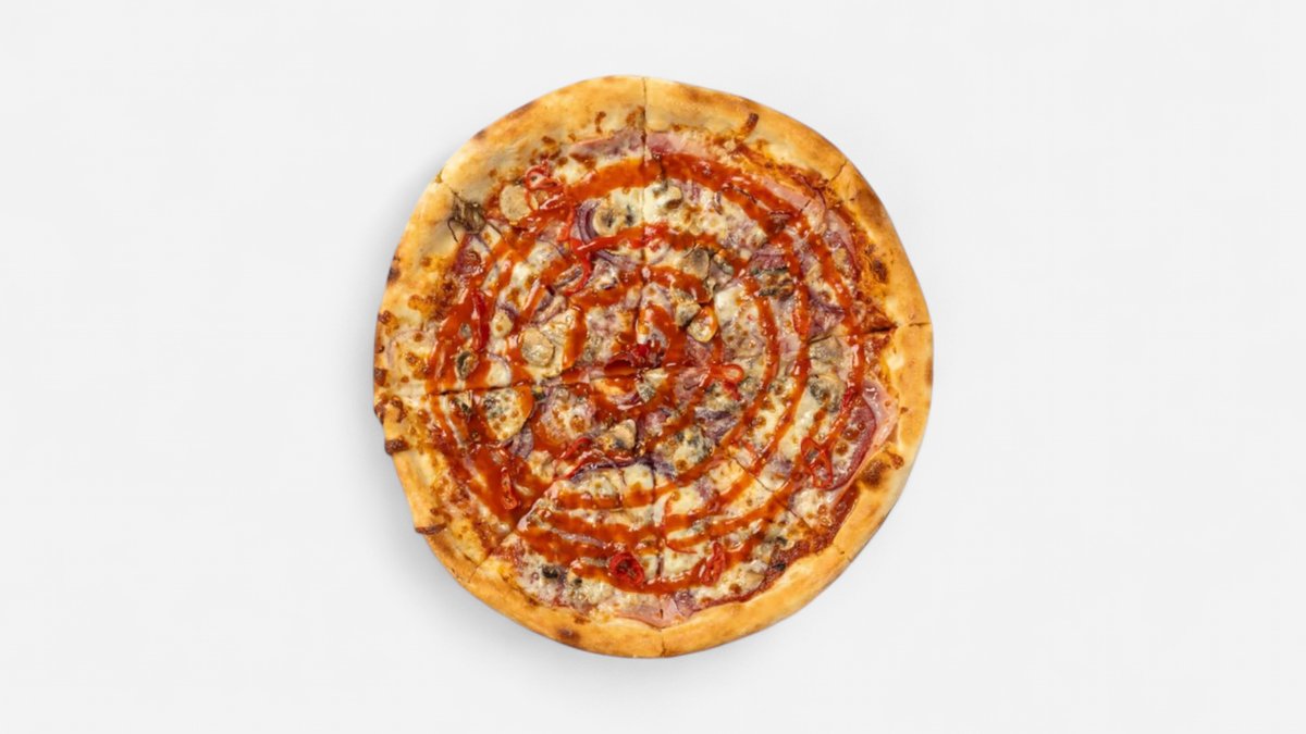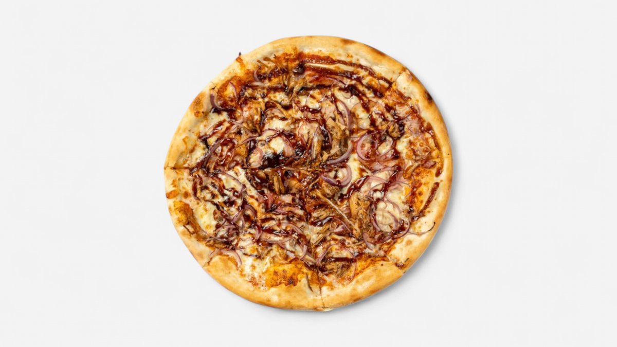 cesto, paradajkový základ, mozzarella, trhané bravčové, BBQ omáčka, cibuľa, slanina 690 g / obsahuje: 1, 3, 7