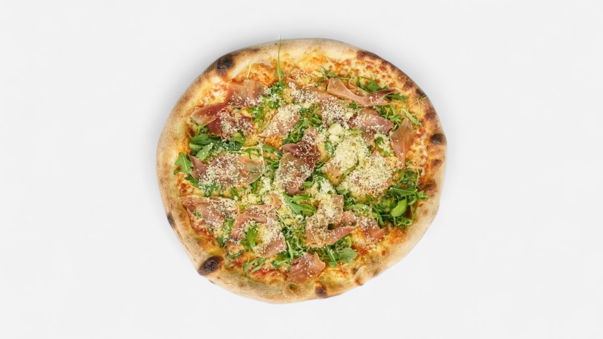 cesto, paradajkový základ, mozzarella, šunka, paradajky, olivy, rukola, parmezán 790 g / obsahuje: 1, 7