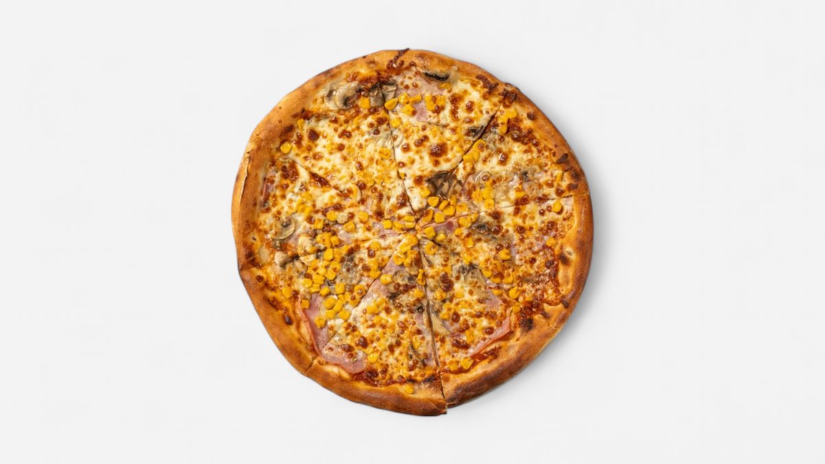 cesto, paradajkový základ, mozzarella, šunka, kukurica, šampiňóny, vajce 785 g / obsahuje: 1, 3, 7