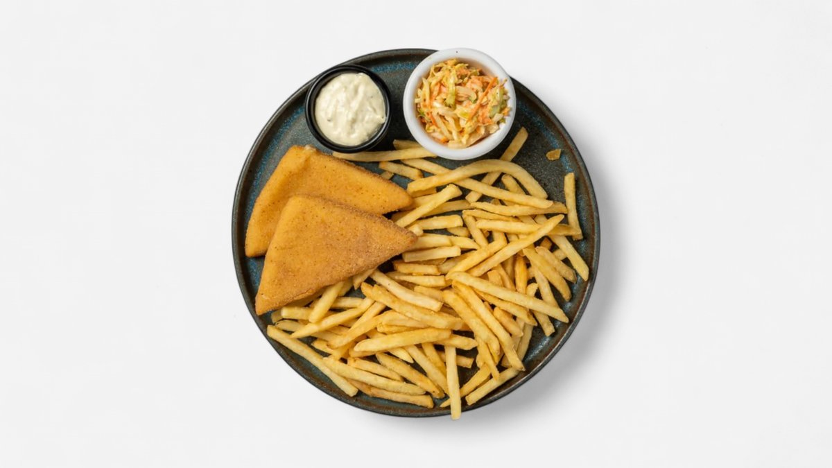 vyprážaný kurací rezeň v trojobale, možnosť výberu prílohy, coleslaw šalát 350 g / obsahuje: 1, 3, 7