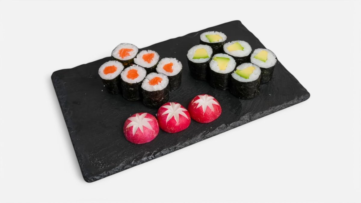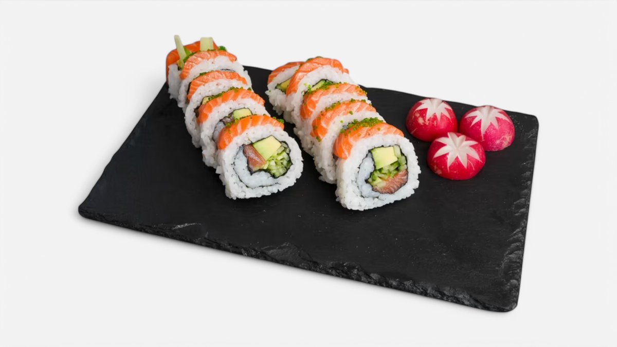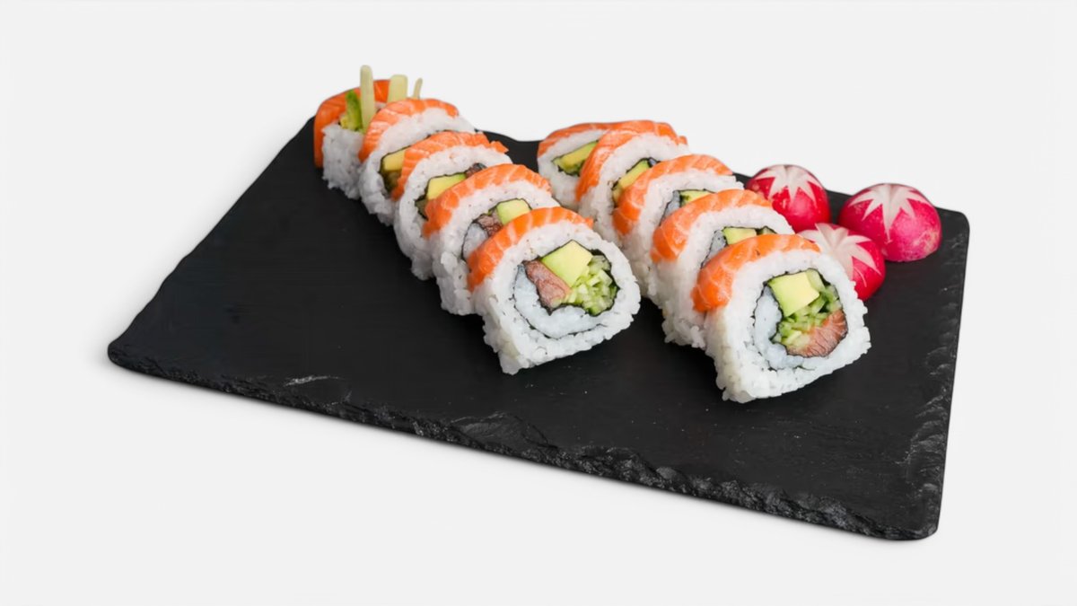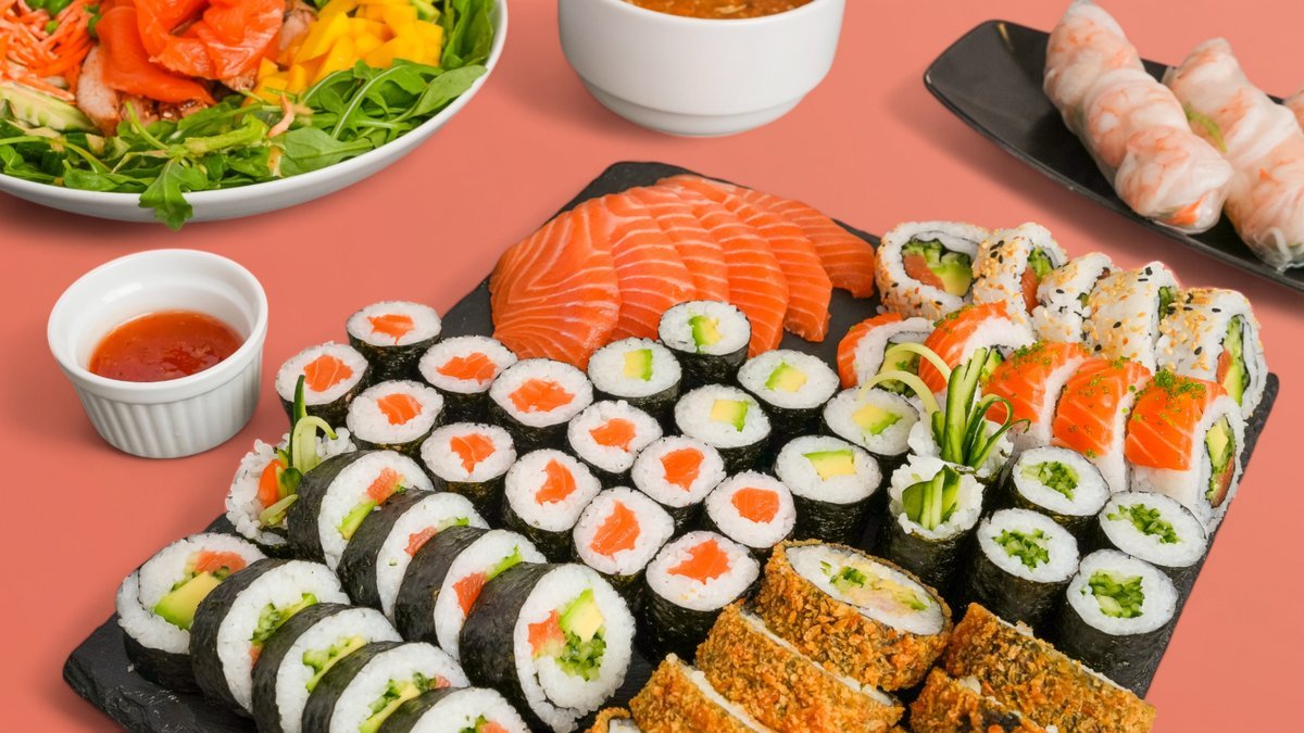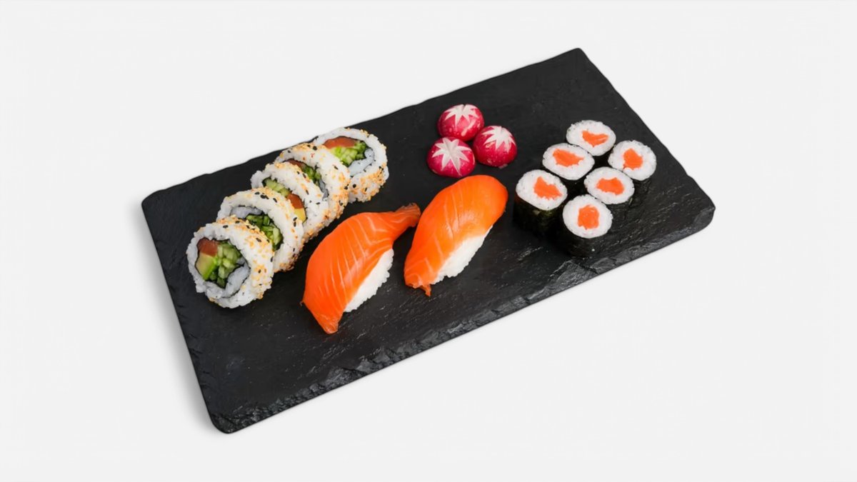 Ebi tempura (10ks) Californie futomaki (10ks) Tobiko uromaki (5ks) Sake uramaki (5ks) Sake maki (12ks) Avokádo maki (12ks) Sashimi sake (6ks) Sake nigiri (5ks) Môžete si vybrať podľa seba.