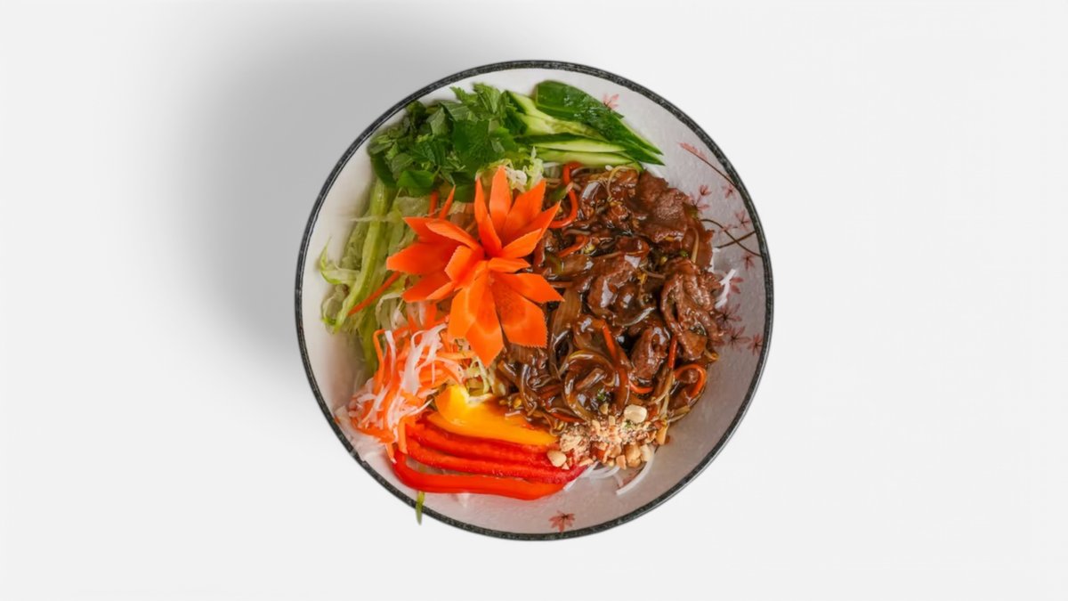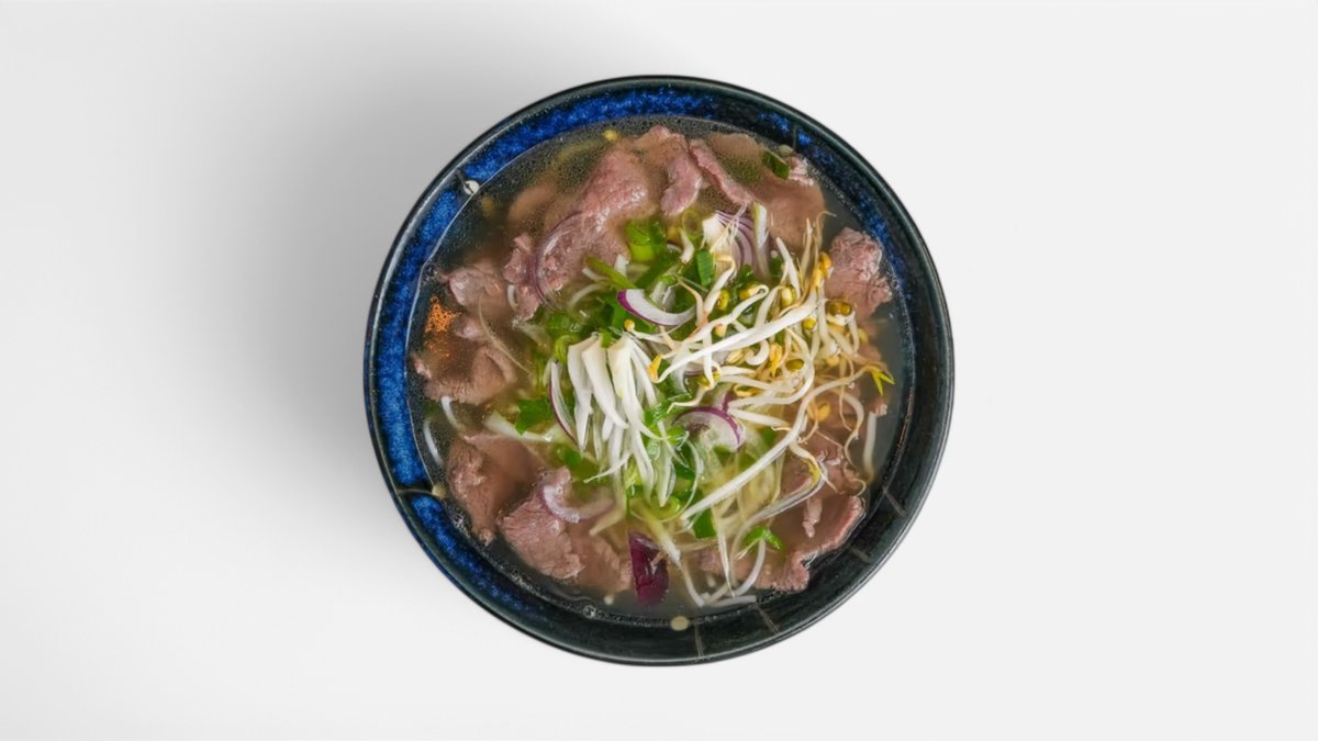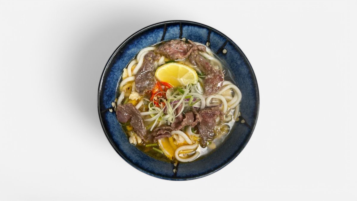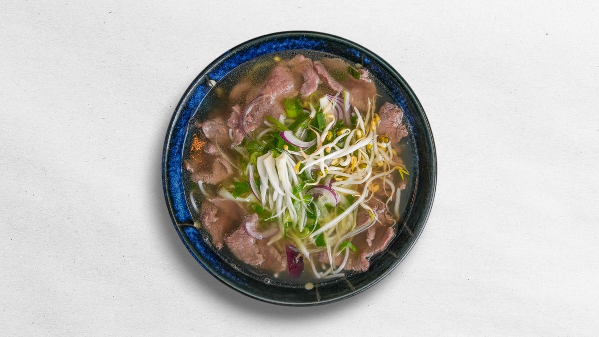 Vietnamská národná polievka, silný hovädzí vývar, mäso, široké rezance, jarná cibuľka, koriander, citrón, chilli, zázvor. Opekané rezance na vietnamský spôsob, mäso/tofu, zelenina, vajcia, sušená cibuľa. 700ml / obsahuje: 4