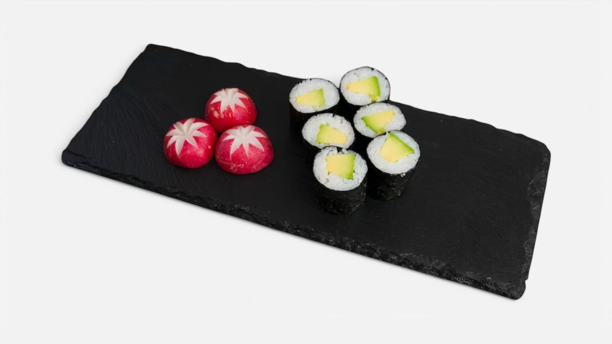 Sushi ryža , sojova omáčka , sladké chilli omáčke , teryaky omáčka , edamame , rajčina , tofu , mrkva , fritované cibuľa , sezam, wakame , mango , špenát