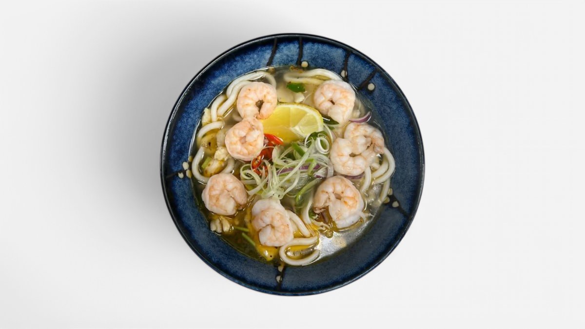 Udon polievka krevety
