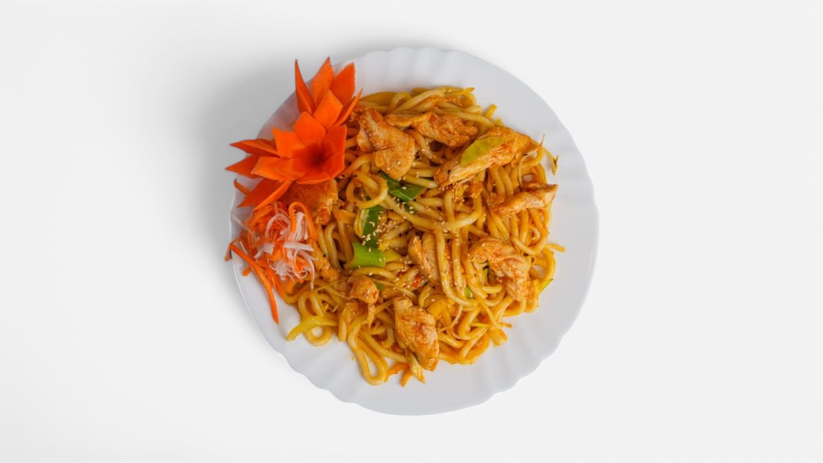 Opekané Udon rezance s kuracím mäsom
