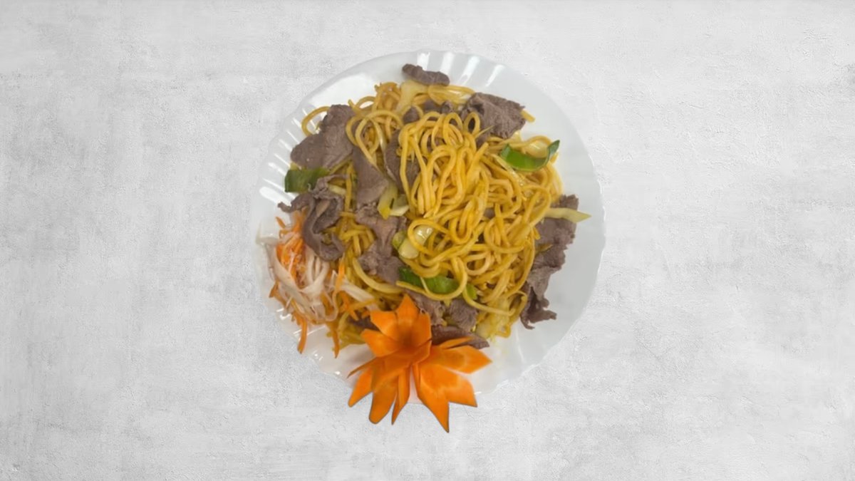 Opekané Udon rezance s hovädzím mäsom
