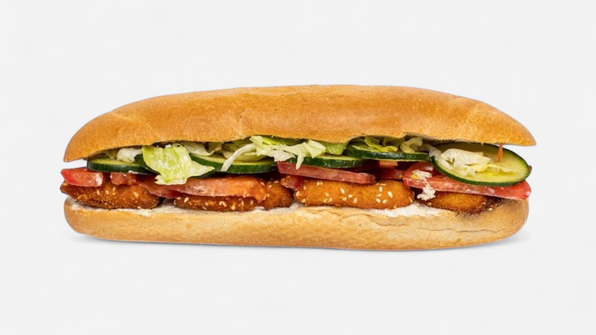 žemľa, vysmážaný syr, uhorka, paradajka, ľadový šalát, tatárska omáčka 310g / Obsahuje: 1,3,7,10