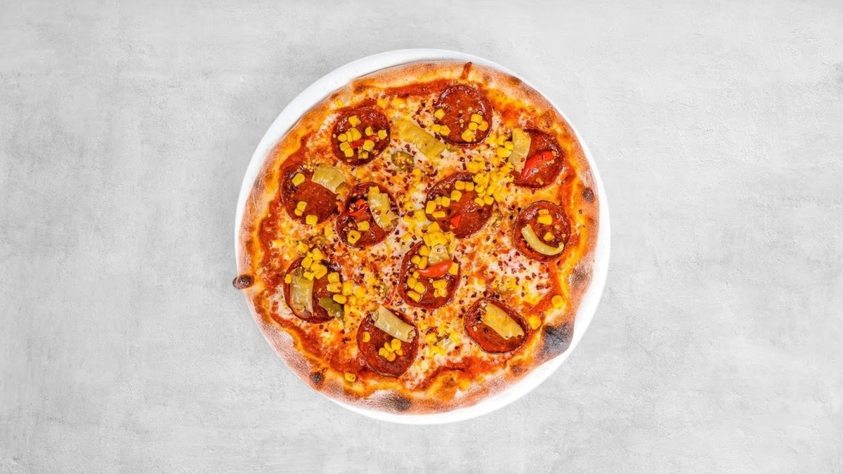 tomat, oregano, saláma, kukurica, feferóny, syr 670 g / obsahuje: 1,3,7