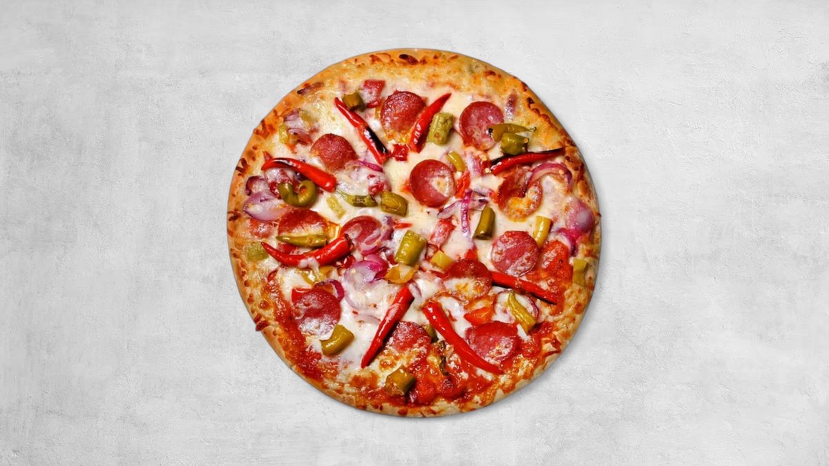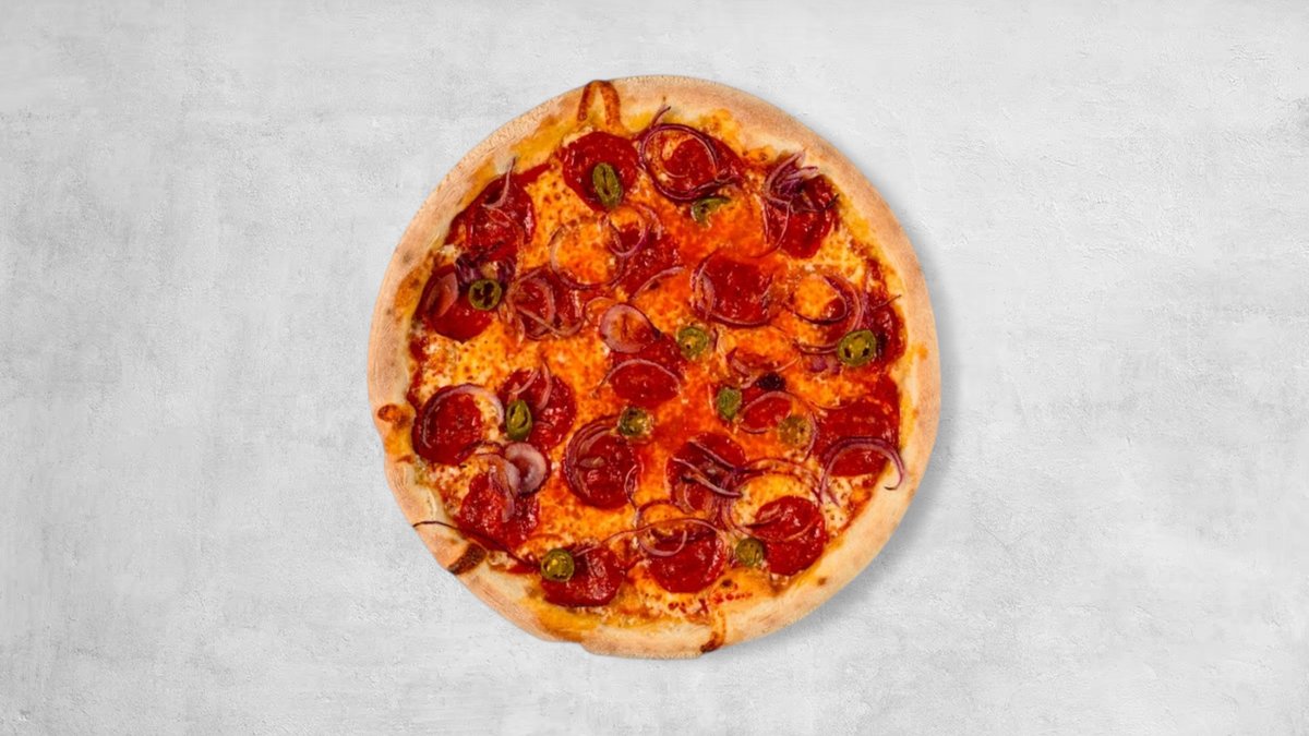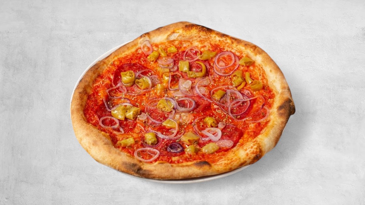 tomat, oregano, slanina, feferóny, cibuľa, syr 630 g / obsahuje: 1,3,7