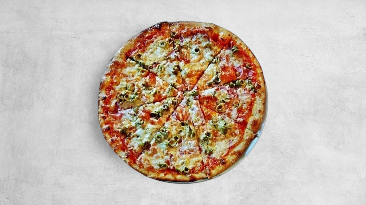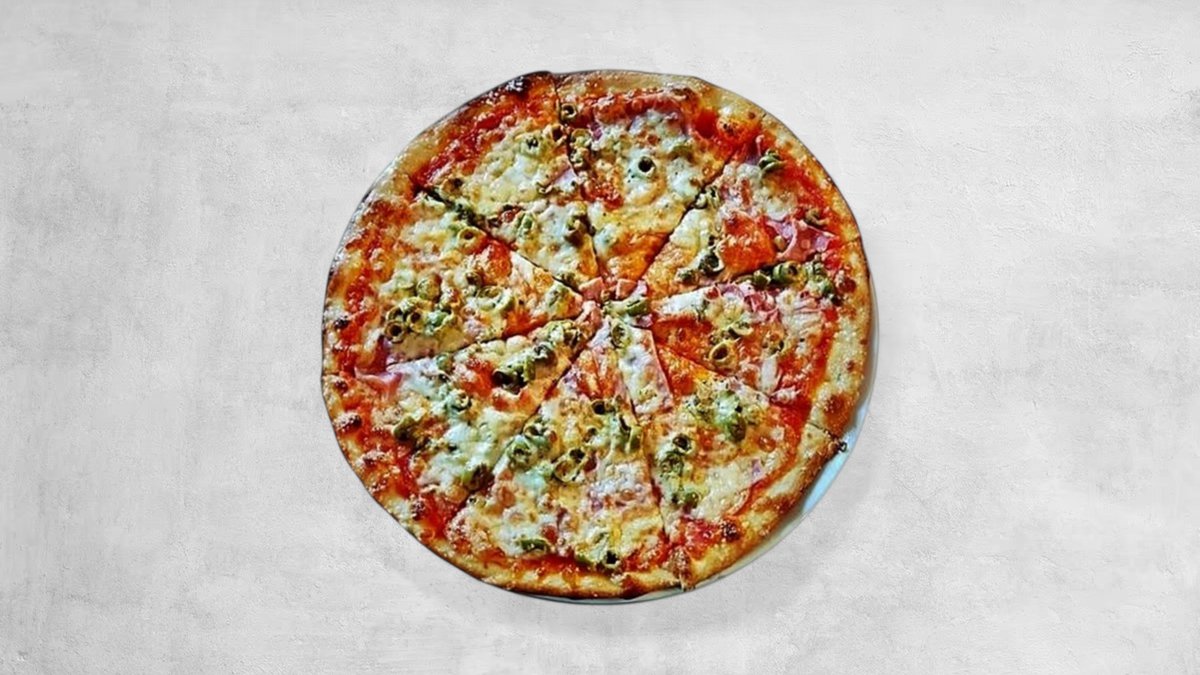 tomat, oregano, šunka, olivy, syr 700 g / obsahuje: 1,3,7