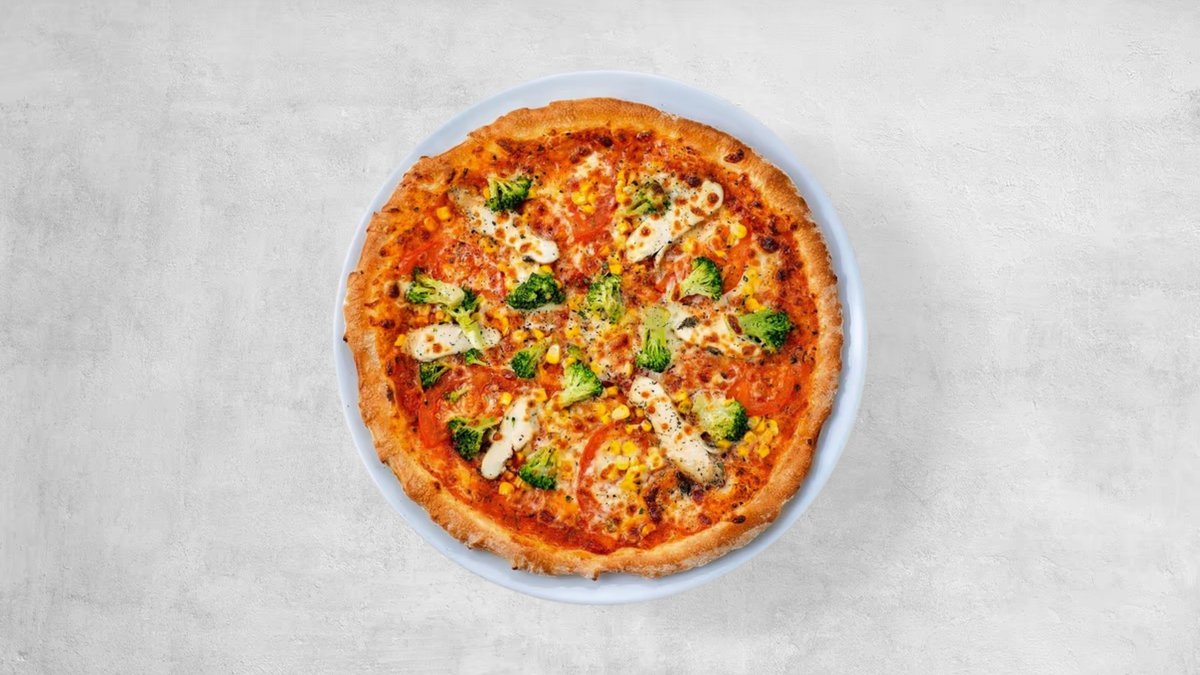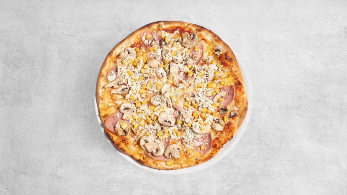 tomat, oregano, šunka, slanina, kuracie mäso, kukurica, syr 700 g / obsahuje: 1,3,7