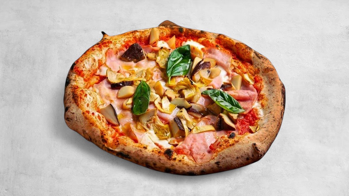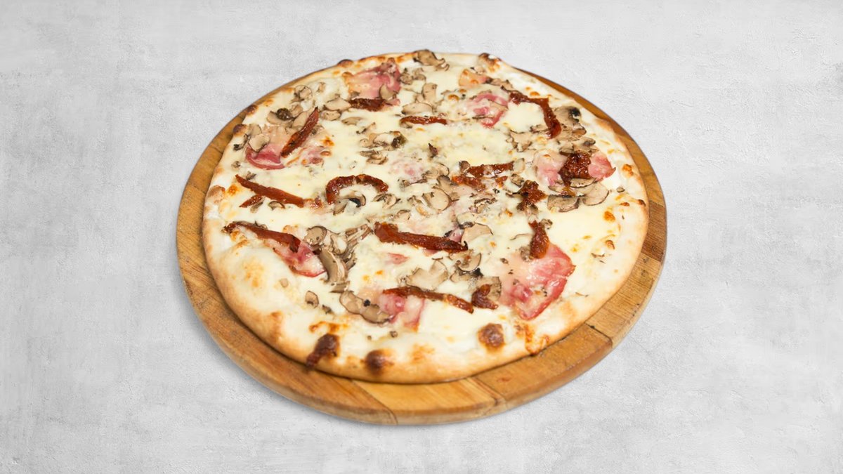 tomat, oregano, kuracie mäso, šunka, slanina, artičoky, syr 700 g / obsahuje: 1,3,7