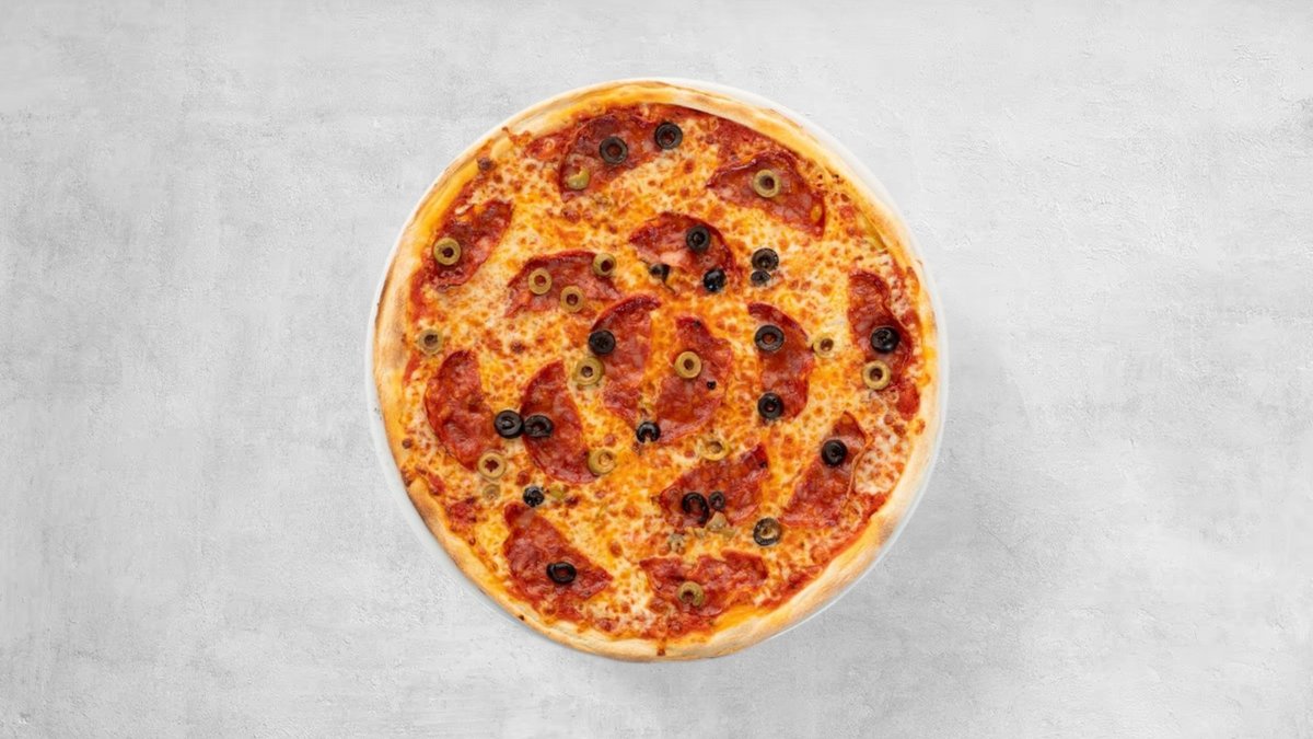 tomat, oregano, šunka, saláma, capary, olivy ,syr 670 g / obsahuje: 1,3,7