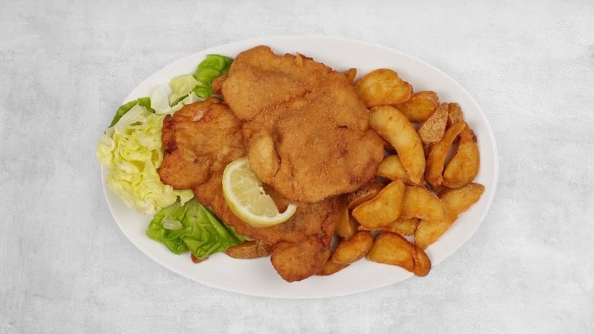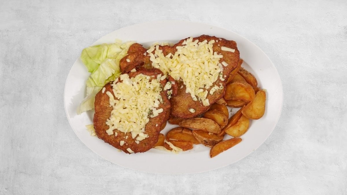 Kurací čiernohorský rezeň, Zemiaky (podľa ponuky)